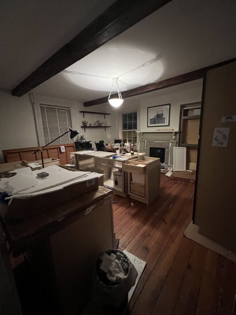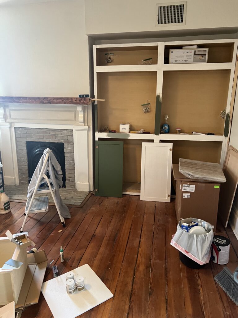 The good news is that being forced to stay indoors has left me with plenty of time to work inside. I seem to have FINALLY figured out how to assemble the cabinets and install the drawers. I am now in the process of priming all the cabinets and getting ready to paint.